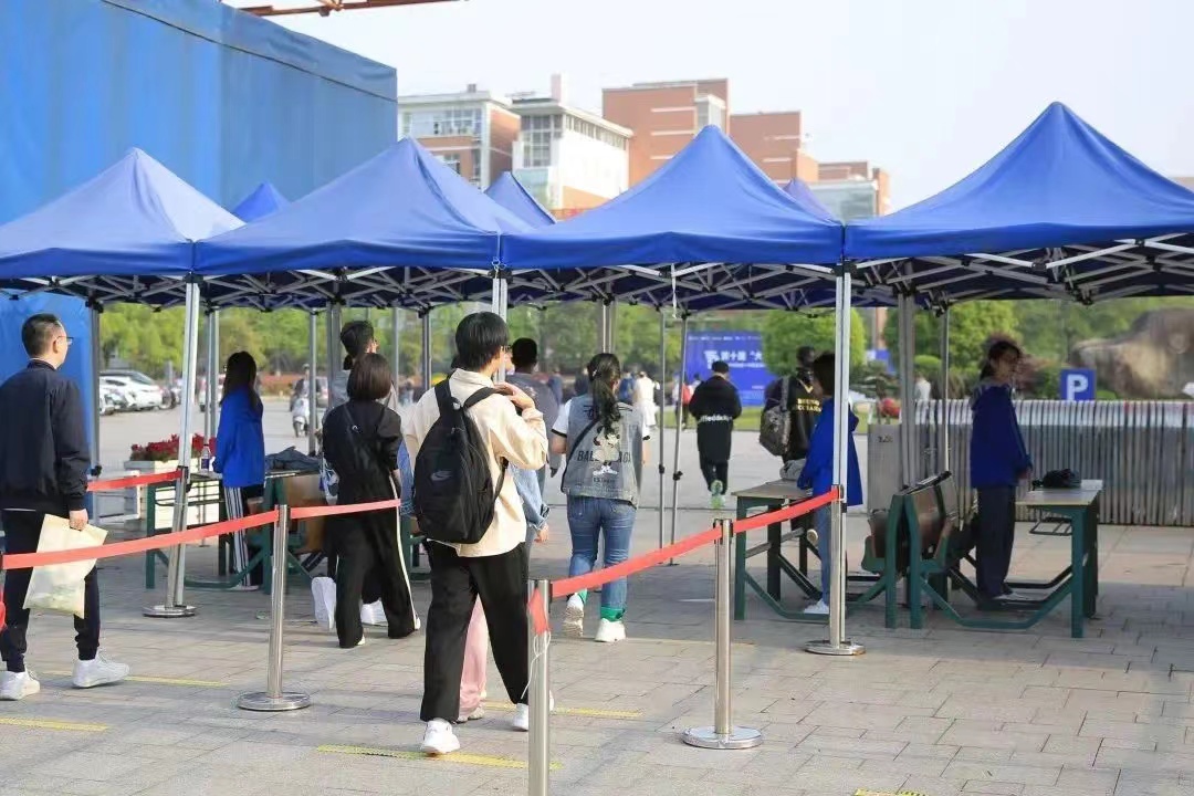 早上7点,考点入口处就已迎来了大批考生,大家手持身份证和准考证,在志愿者引导下有序入场。考生须在报到处进行人脸识别验证,由工作人员进行安检等程序后方能进入考场候考,手机等随身物品禁止带入考场,统一放在考点指定位置交由工作人员保管。今年杭州电子科技大学“三位一体”招生计划共450人,经初审有3000余名考生获得综合素质测试资格。