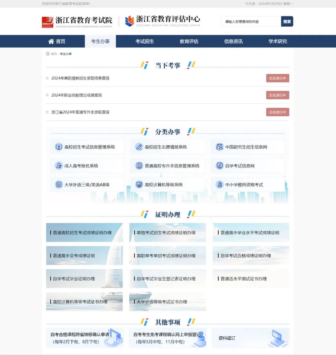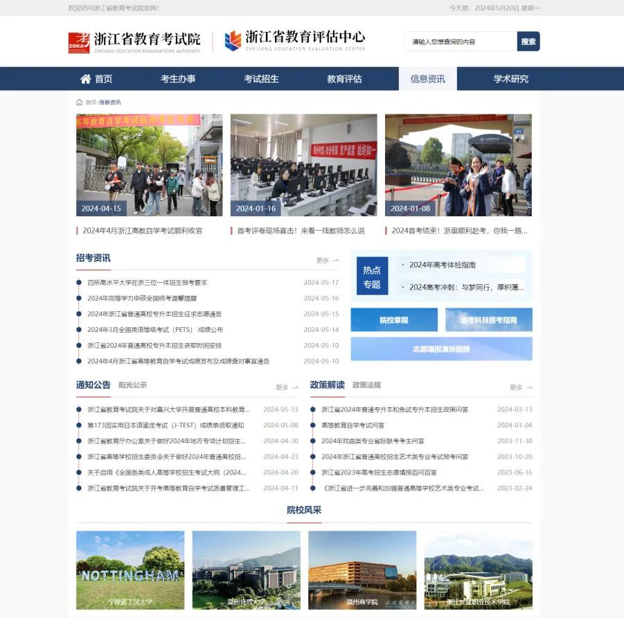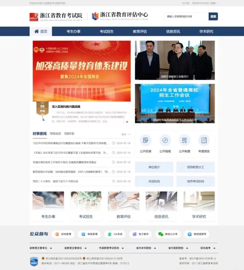 5月20日,浙江省教育考试院门户网站深度升级、焕新上线,以更便捷的考生服务、更优质的考事资讯、更智能的阅读体验、更新颖的视觉设计以及更沉浸的办事互动,弘扬传递考试招生和教育评估“公平公正、科学规范”价值理念,加快推进教育考试评估省域现代化实践和数字化改革,用面貌之“新”展现服务之“心”!