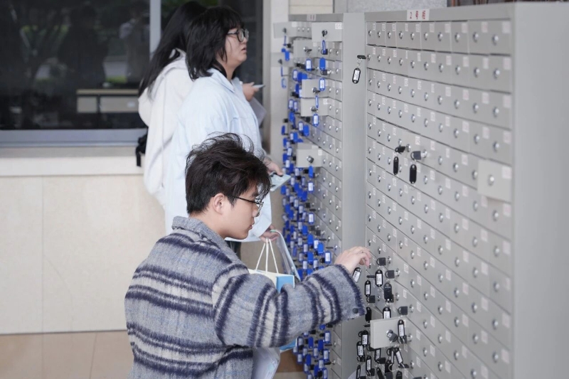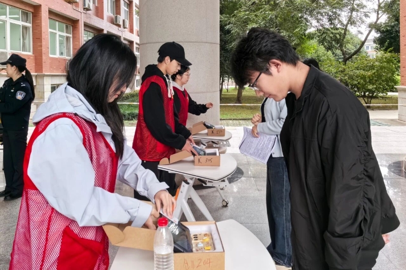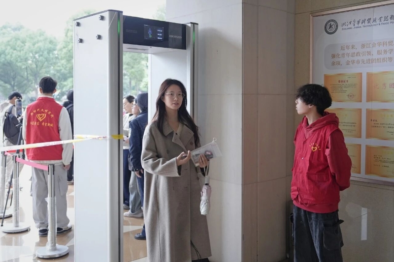 开考当日,各地抵达考点的考生在工作人员和志愿者的引导下,按照考点相关管理要求,将手机、蓝牙耳机、智能手表等电子设备统一存放,有序排队接受安检,入场秩序井然。