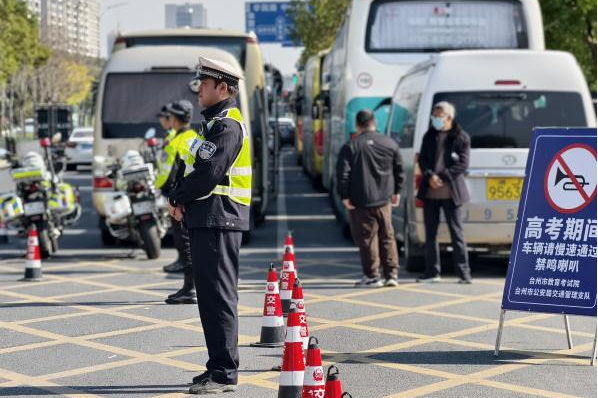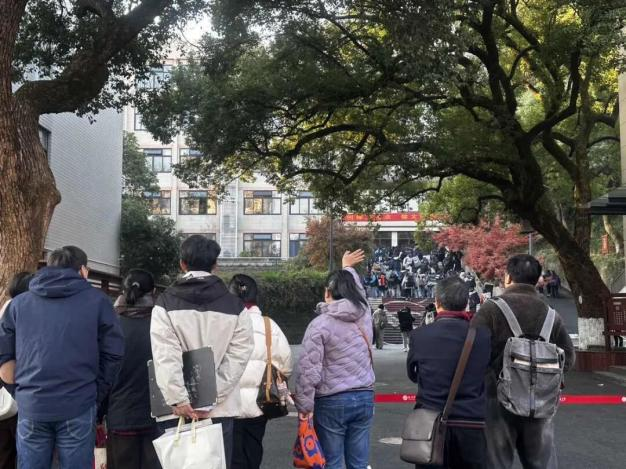 杭州考点外家长送考 台州考点准备就绪等待考生入场