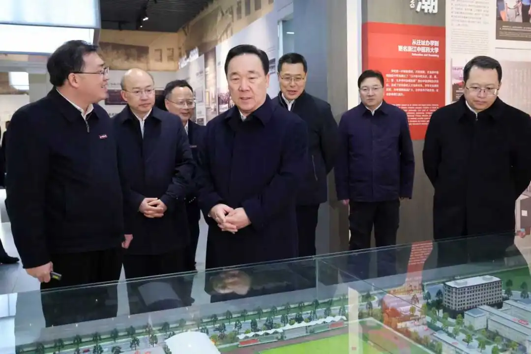 1月5日,省委书记王浩专题调研“双一流196工程”,图为在浙江中医药大学滨文校区考察。