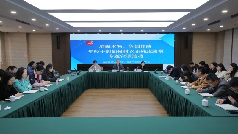 为深入教育引导青年干部职工树立和践行正确政绩观,锚定教育考试评估事业高质量发展目标勇担使命、真抓实干,3月19日上午,省教育考试院开展“增强本领、争创佳绩,年轻干部如何树立正确政绩观”专题宣讲活动。省教育考试院党委副书记陈煜军出席并讲话。省教育考试院和服务中心青年干部职工参加活动。